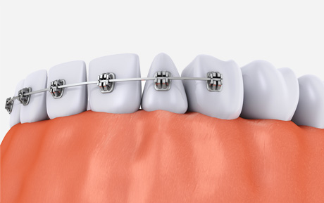 가장 널리 사용되는 장치로써 교정치료의 정밀도와 효울성에 있어서 가장 우수하고 금속 특유의 큰 장점으로 내구성이 강하며, 메탈이라는 특성으로 인해 조아는 힘이 강하여